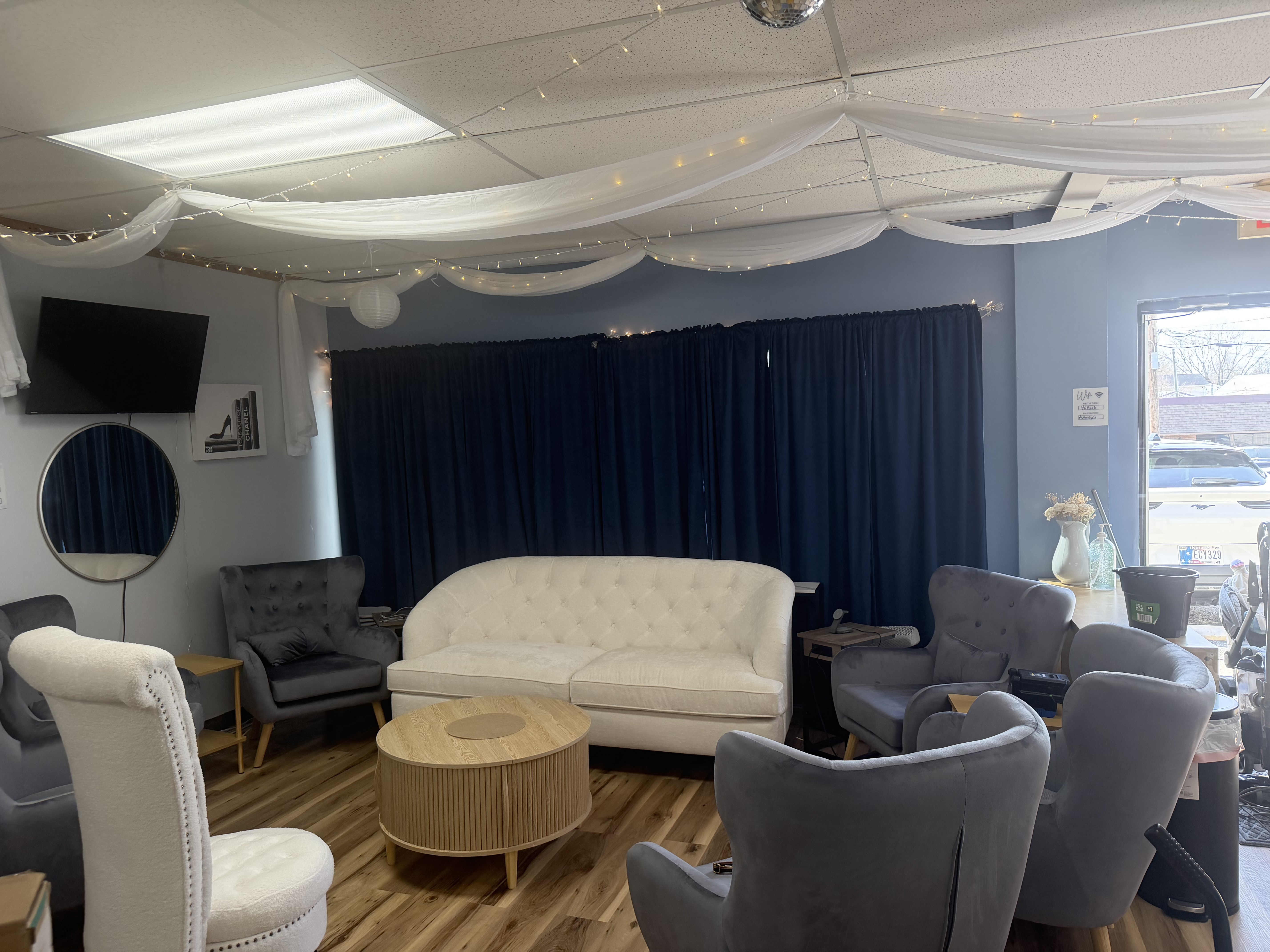 Spacious seating for up to 120 adult guests, a child area with seating for 12 kids, as well as plenty of comfortable sofa chairs and a couch. offering an inviting atmosphere for any unique event.